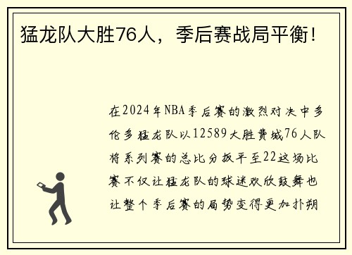 猛龙队大胜76人,季后赛战局平衡!